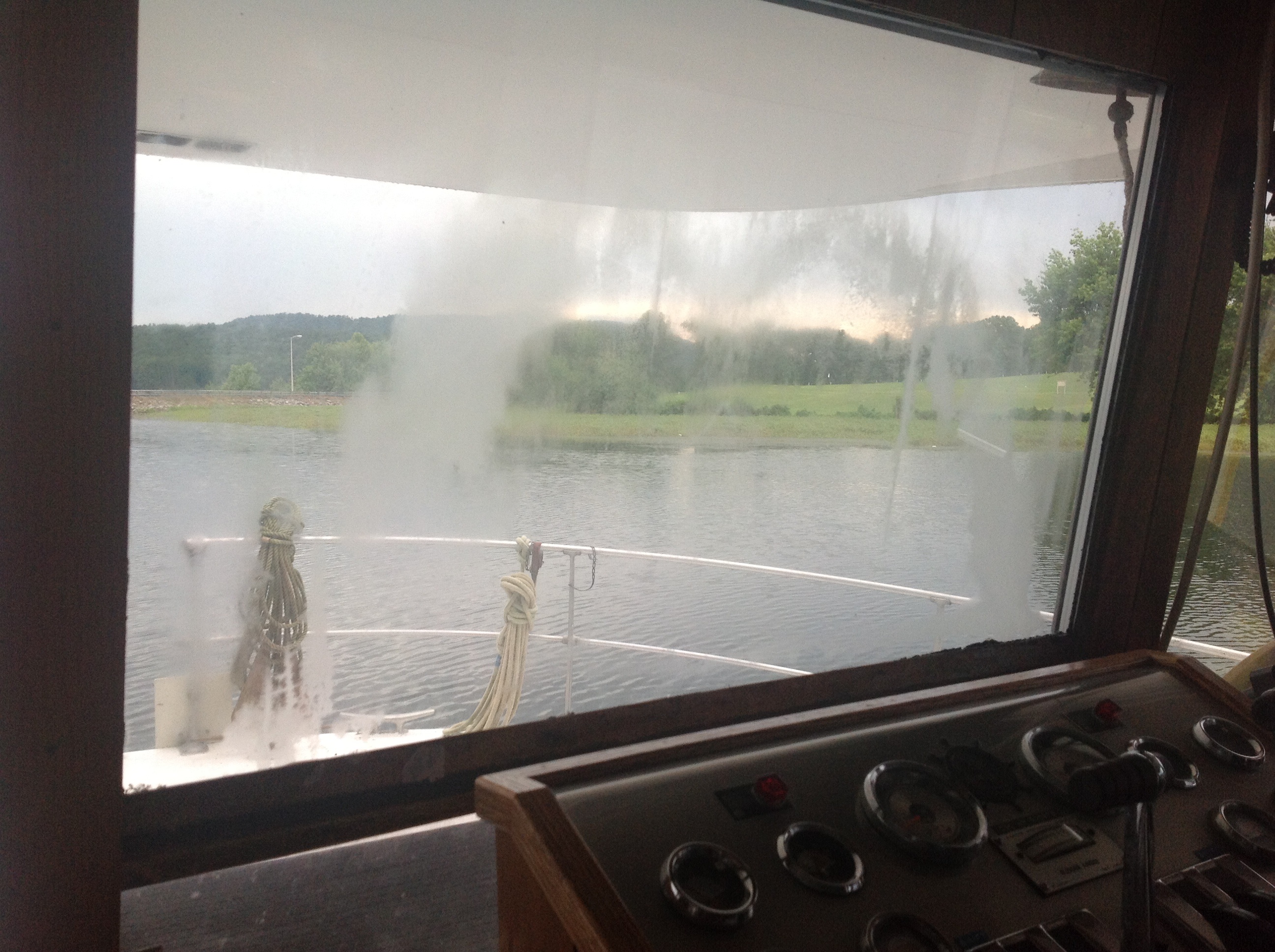 The double pane window has worked well in this service in that it does not get condensation on the inside on those cold winter cruising days unlike all of my prior boats. I recall one Christmas cruise where we had to set up a hair dryer to blow on the front glass to keep the condensation at bay so that we could see out to pilot the boat. But now I can’t see through the double pane due to condensation that has formed between the panes.