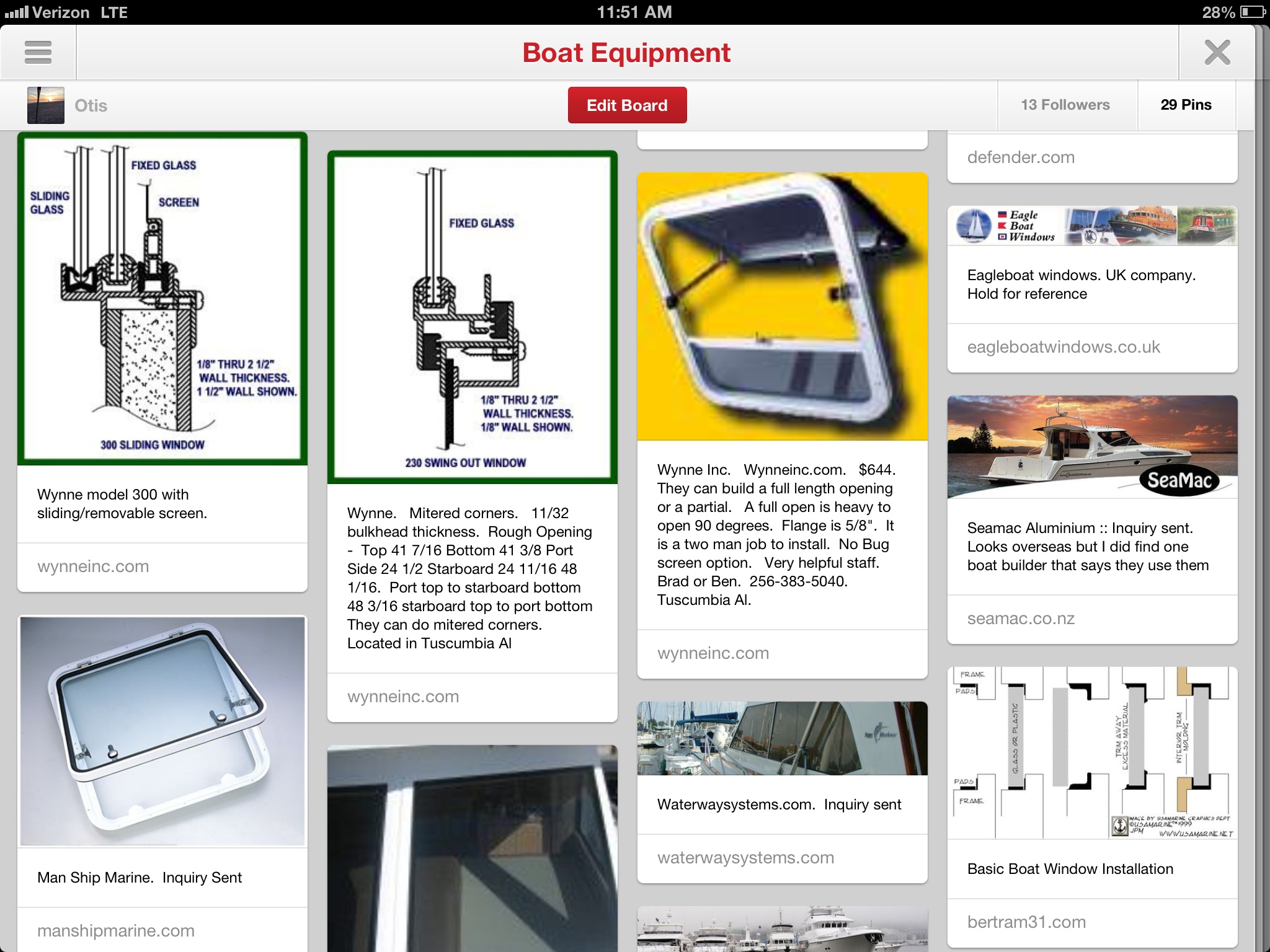 And once I had narrowed my list down I decided why not send click on the contact link for each prospective supplier and get a qoute. Well it worked. Within a few hours I was receiving calls and by noon I had settled on my new window supplier. And the coolest part is they are located about an hours from here so I can drive over and pick up my new windoe. Hum. I never would have thought I would find a local supplier on the www much less on Pinterest. Maybe this Pinterest site is more than just visual chewing gum. Pinterest is another Boating Lessons Learned.