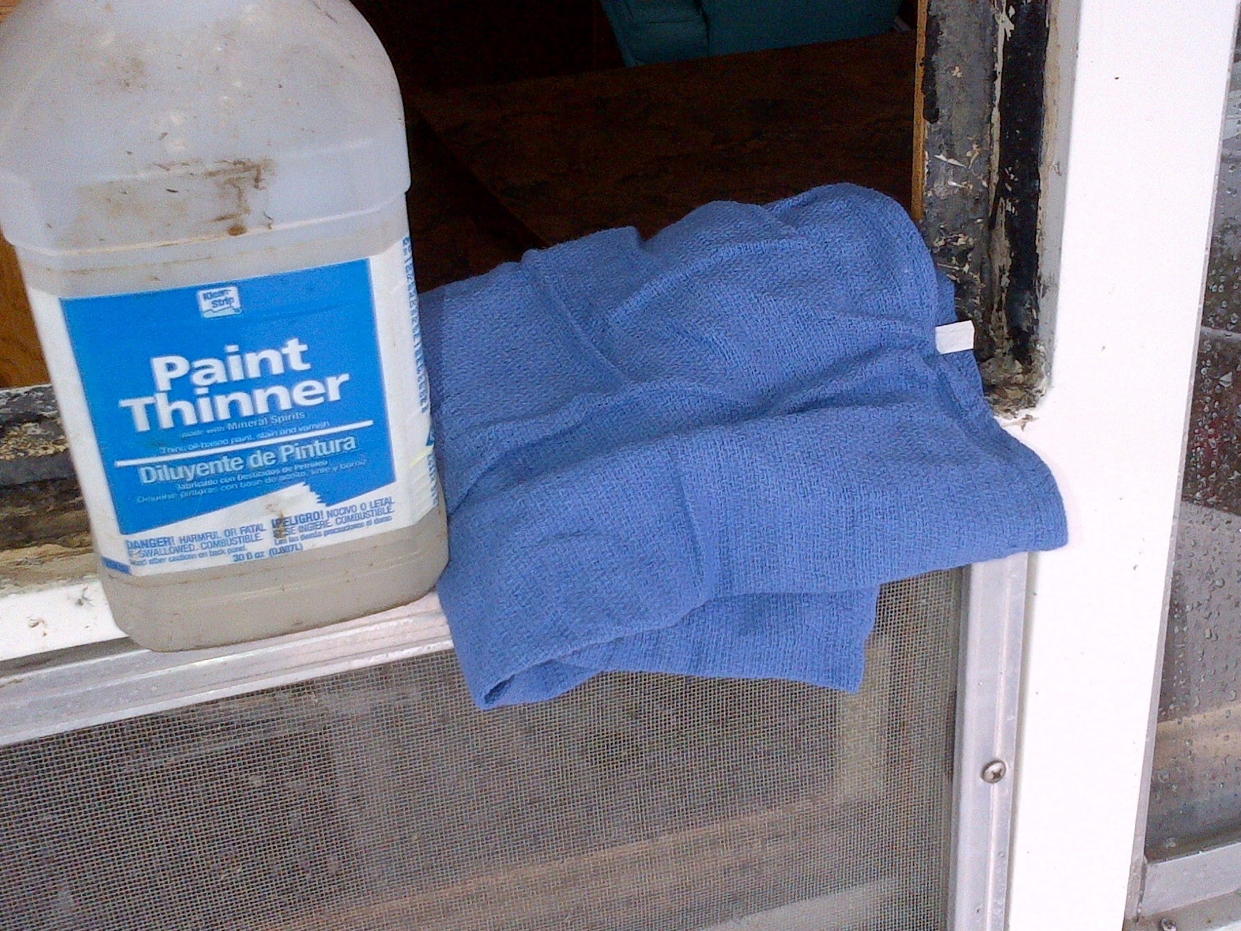As you can see in the photo the window was bedded in an asphalt based window sealant. I scraped off as much as I could and then attempted to use mineral spirits to remove the dry and crusty residue.