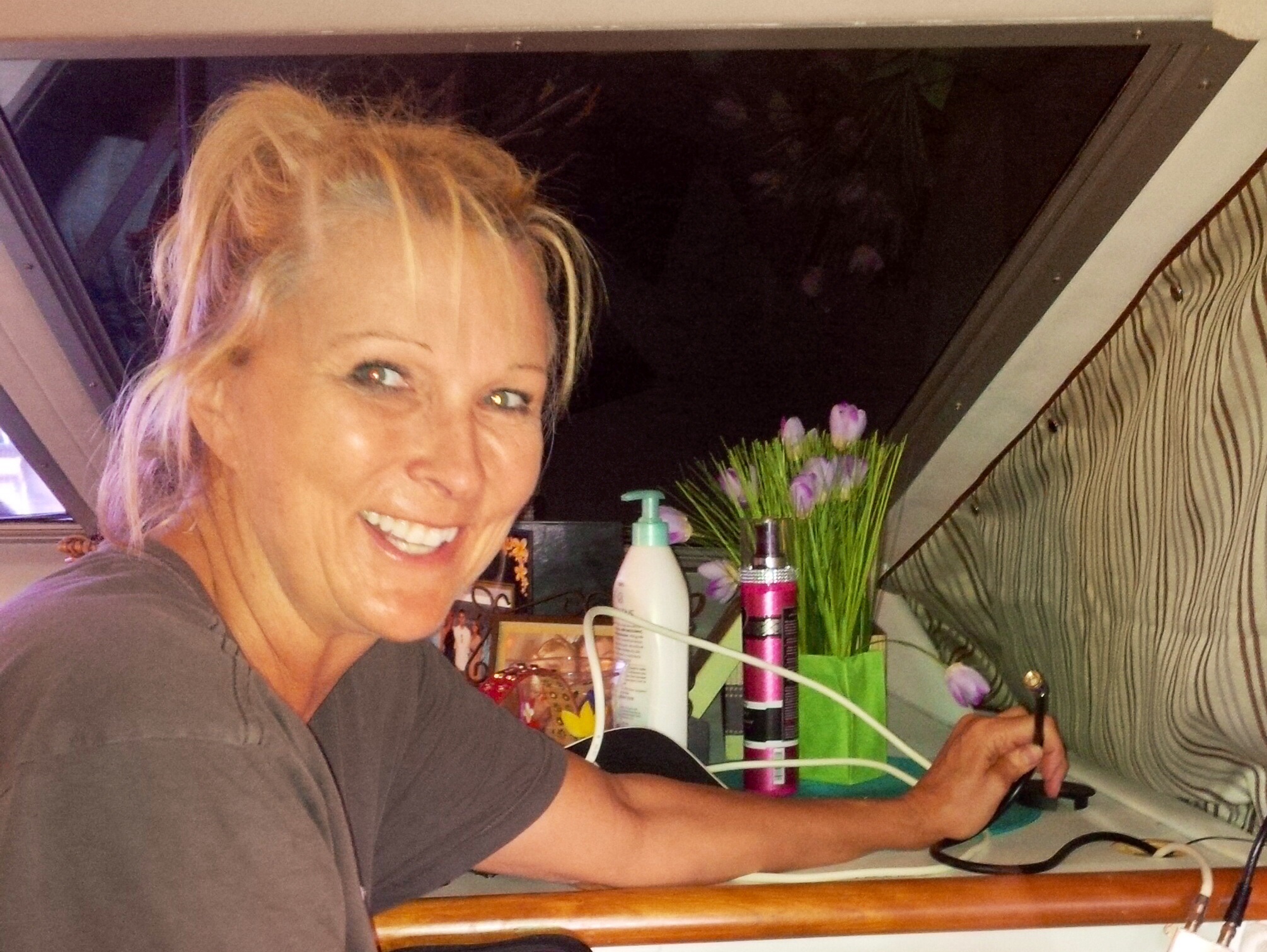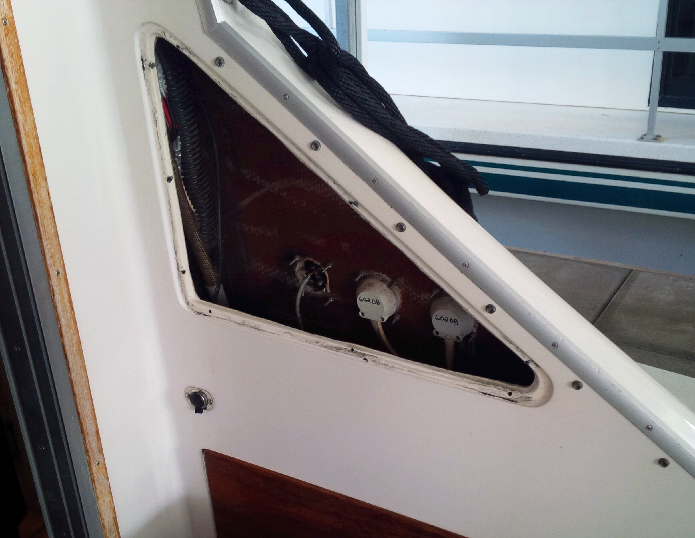 After a couple of tries at pushing the cable through LuLu commented that “We need a long stiff wire or something that we can snake though this maze.” “It’s interesting that you say that LuLu because they make such a thing. It is called a fish tape? Really? Do you have one?” Now I’m the one pouting. “No I don’t LuLu but you’re right, we sure could use one about now.” “Hey” she said, “Do you think the man next door might have one?” “I doubt it but it wouldn’t hurt to ask.” LuLu being shy like she is hops up to see and what do you know? Here he comes down the dock. “Have you got one of those fish thingies” she asks. “You know, one of those long skinny stiff wire thingies.” “Do you mean a sink drain snake?” He asks. “I have one of those that might work”. She looks back at me and I nod in the affirmative, smiling. “Has LuLu ever met a stranger?”