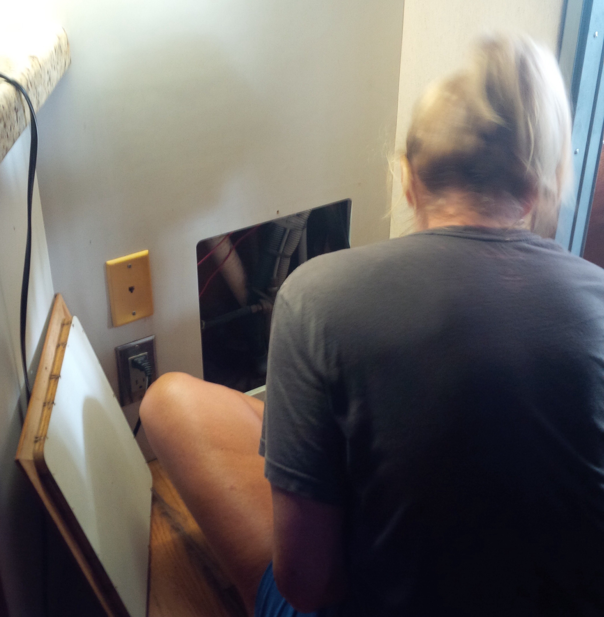 LuLu jumped right into it and started taking the access panels off to see how we would go about routing the cable.